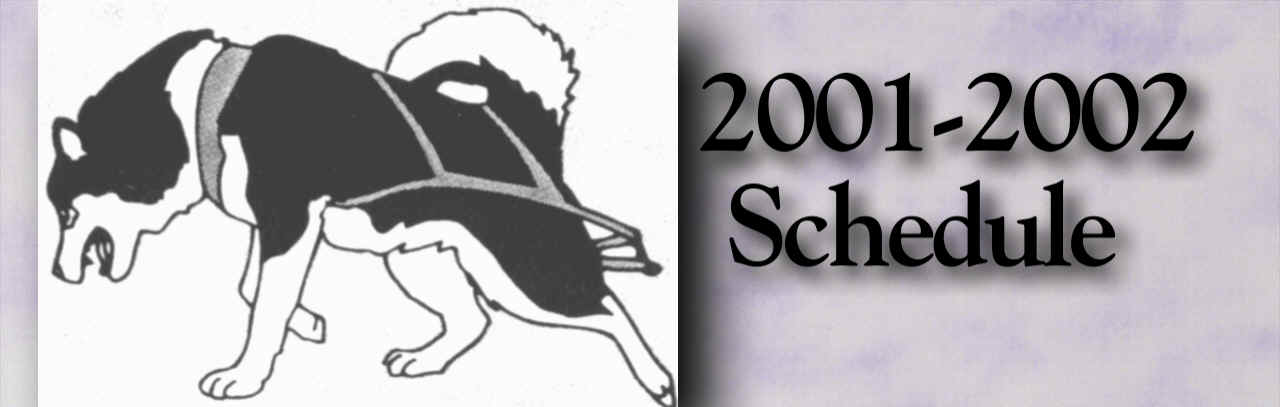 artwork provided and owned by: Rhonda Schrader October 13-14, 2001 Midwest Musher Season Kickoff Warren, WI. (Results) October 27, 2001 Howl-O-Ween Weight Pull Petsmart East, Madison, WI. (Results) December 1, 2001 Hobbit Haul Weight Pull Tisch Mills, WI (Results) January 5, 2002 Ode to Champions Weight Pull Petsmart West, Madison, WI (Results) January 12, 2002 Sarge's Tug Weight Pull Mukwonago, WI. (Results) February 2, 2002 National Championship Weight Pull Wisconsin Dells, WI (Results) Wisconsin Dells, WI (Results) February 16-17, 2002 North Woods Championship Weight Pull Eagle River, WI (Results-Sat)(Results-Sun) February 23, 2002 Hudson Haul Weight Pull Badlands SnoPark, Hudson, WI (Results) March 16, 2002 Iarortuk Fun Finale Weight Pull Tisch Mills, WI. (Results)